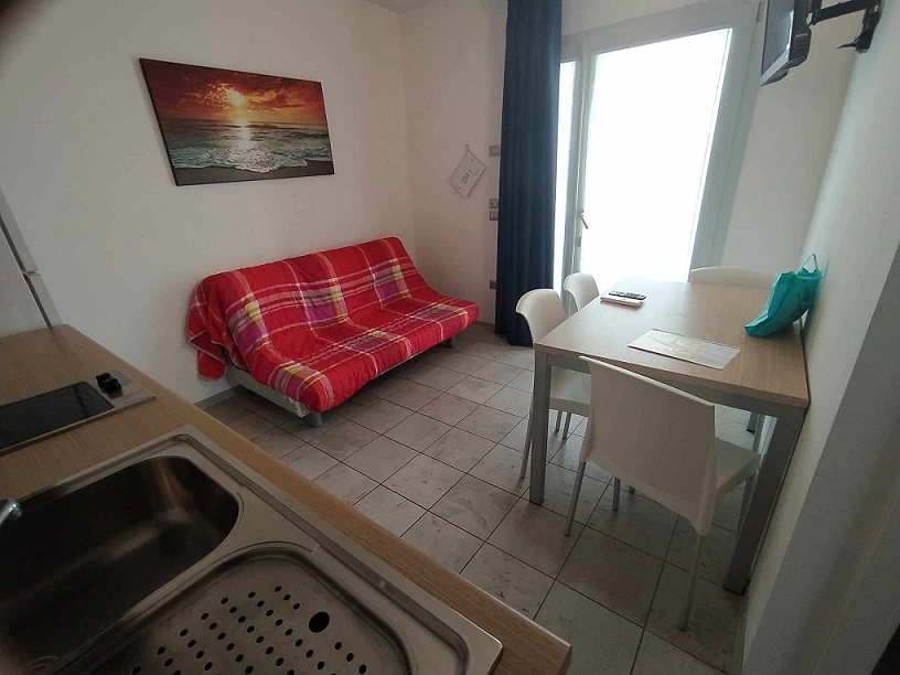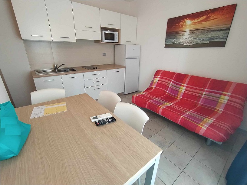 4-lôžkové apartmány sú moderné, veľmi pekné, s velkými terasami. Každý apartmán tvorí obývacia izba s kuchynským kútom a rozťahovacím dvojlôžkôm + spálňa s manželskou posteľou + kúpelňa so sprchovým boxom. Apartmány sú nadštandardne vybavené : - digitálna klimatizácia na diaľkové ovládanie - TV-LCD-SAT - mikrovlnka - WIFI-FREE pripojenie priamo na apartmáne - trezor - automatická práčka v spoločných priestoroch rezidencie